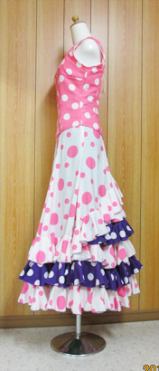 ブラウスと紫地白水玉部分