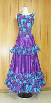 紫無地部分大バラ柄地 模様